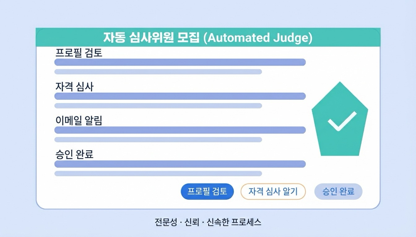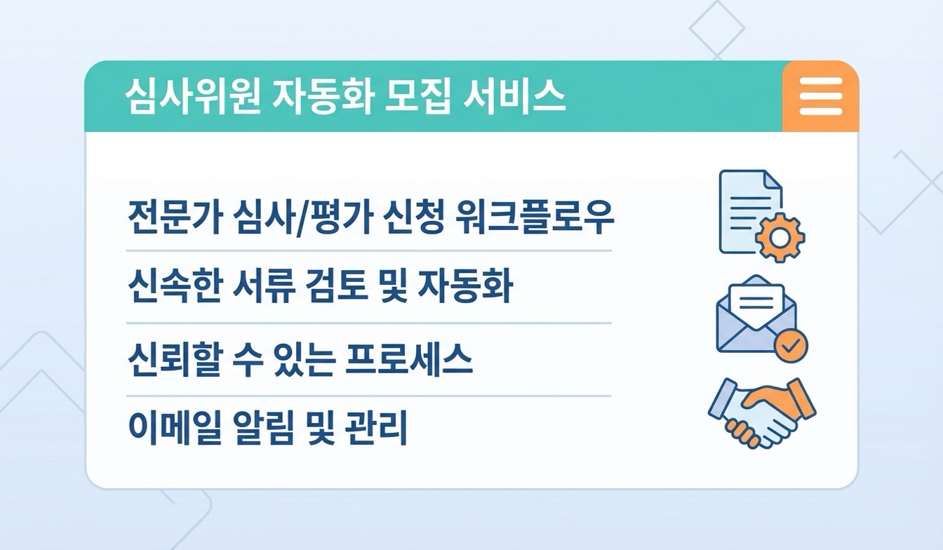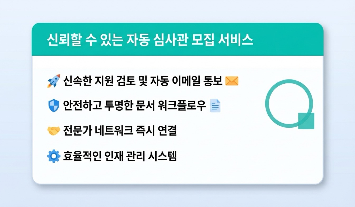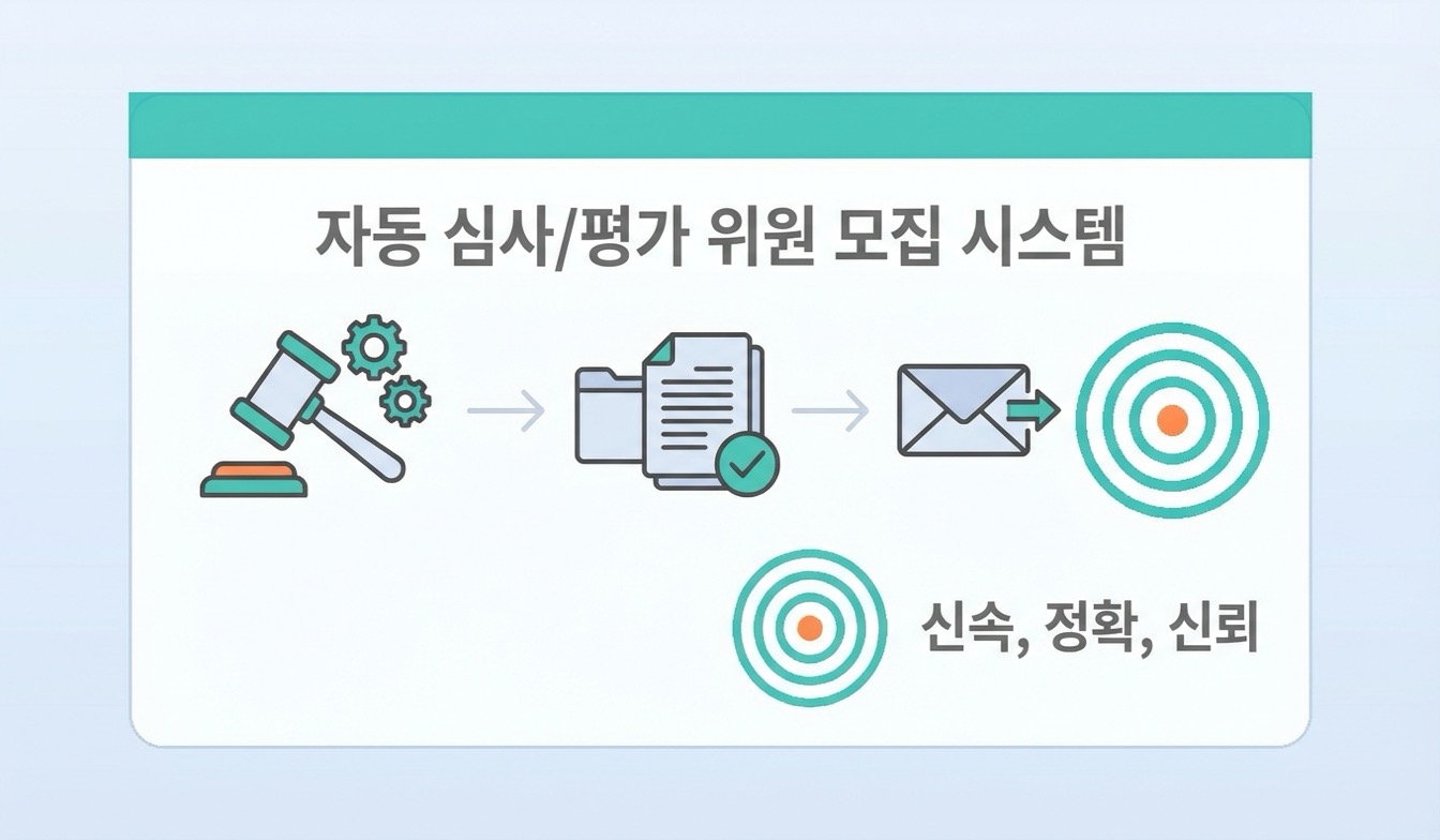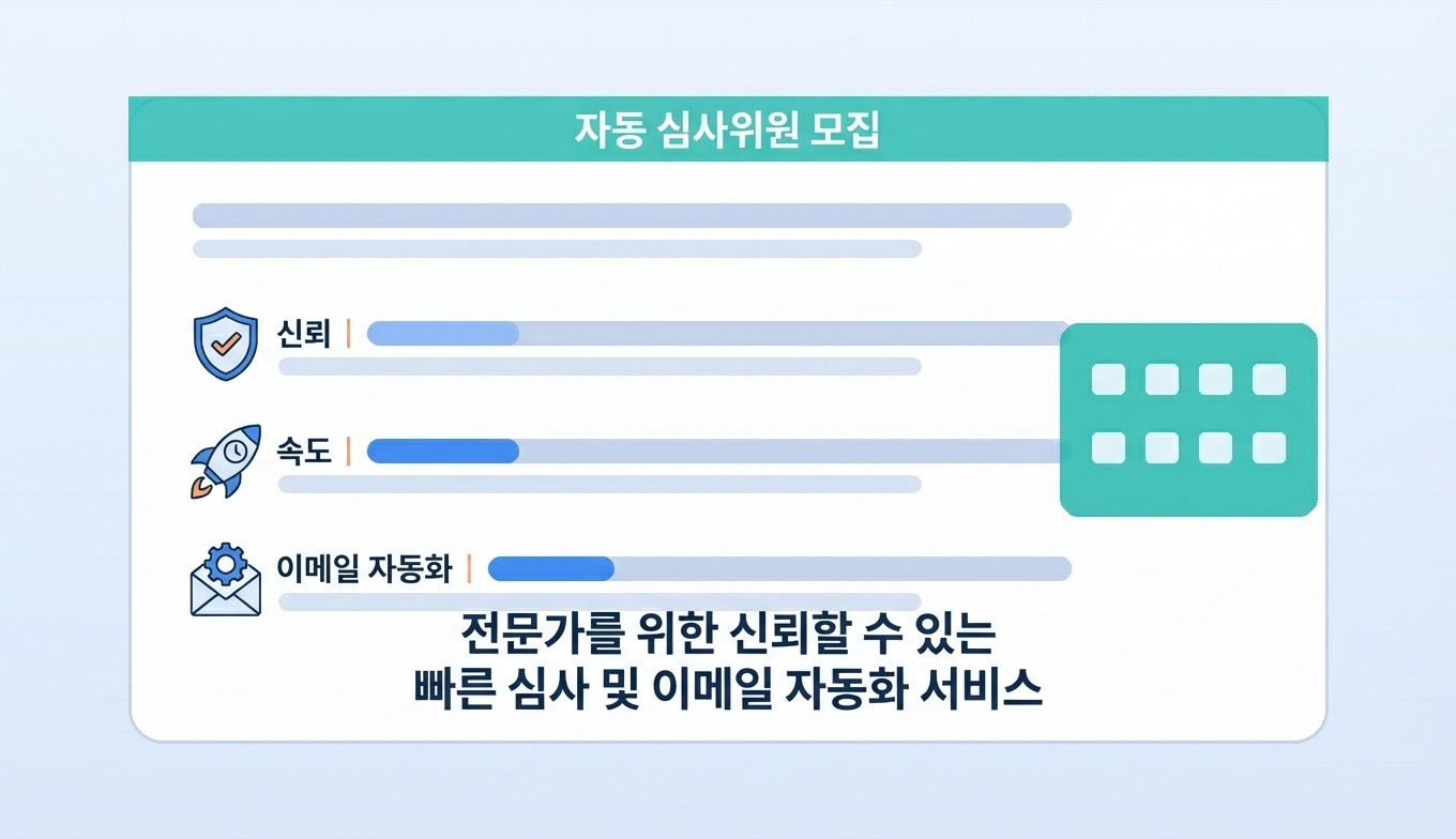 자동 지원 서비스는 심사·평가위원 모집 공고에 대해 사용자 정보 기반 이메일 지원을 자동으로 실행하는 서비스입니다.